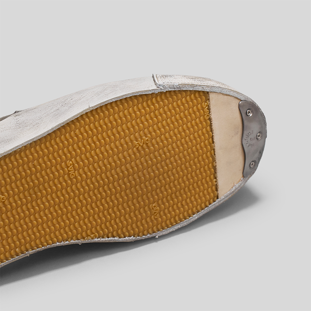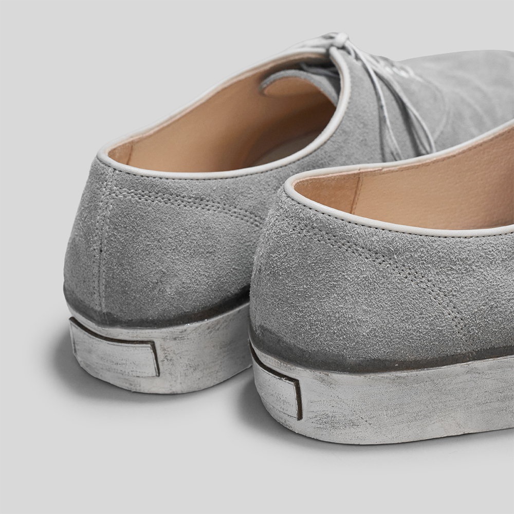 製法は革靴と同様の作り込みをしており、セメント+マッドガード製法を採用し、手作業でしか製作できない革靴ならではの履き心地に仕立てています。ソールにはイタリアSVIG社の合成ゴムソールを配し、つま先部分にはTRIUMPHヴィンテージスチールが付きます。