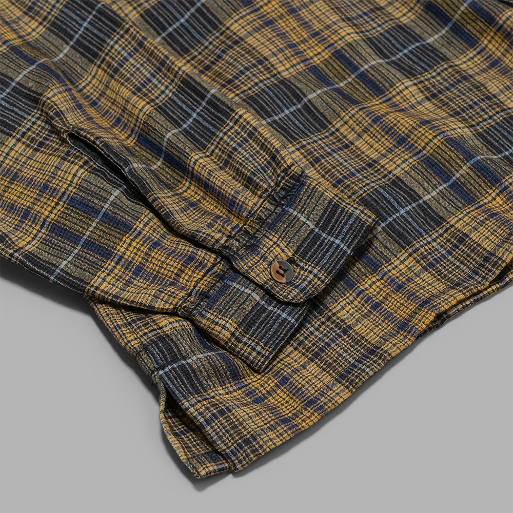 型は、ジャケットとシャツの中間のようなデザインで製作されたオープンカラーのジャケットシャツです。インドならではの手仕事と緻密な設計により多様なシーンで着用できる仕上がりです。裏地のない一重の仕様で、サイドポケットが左右に一つずつ付きます。