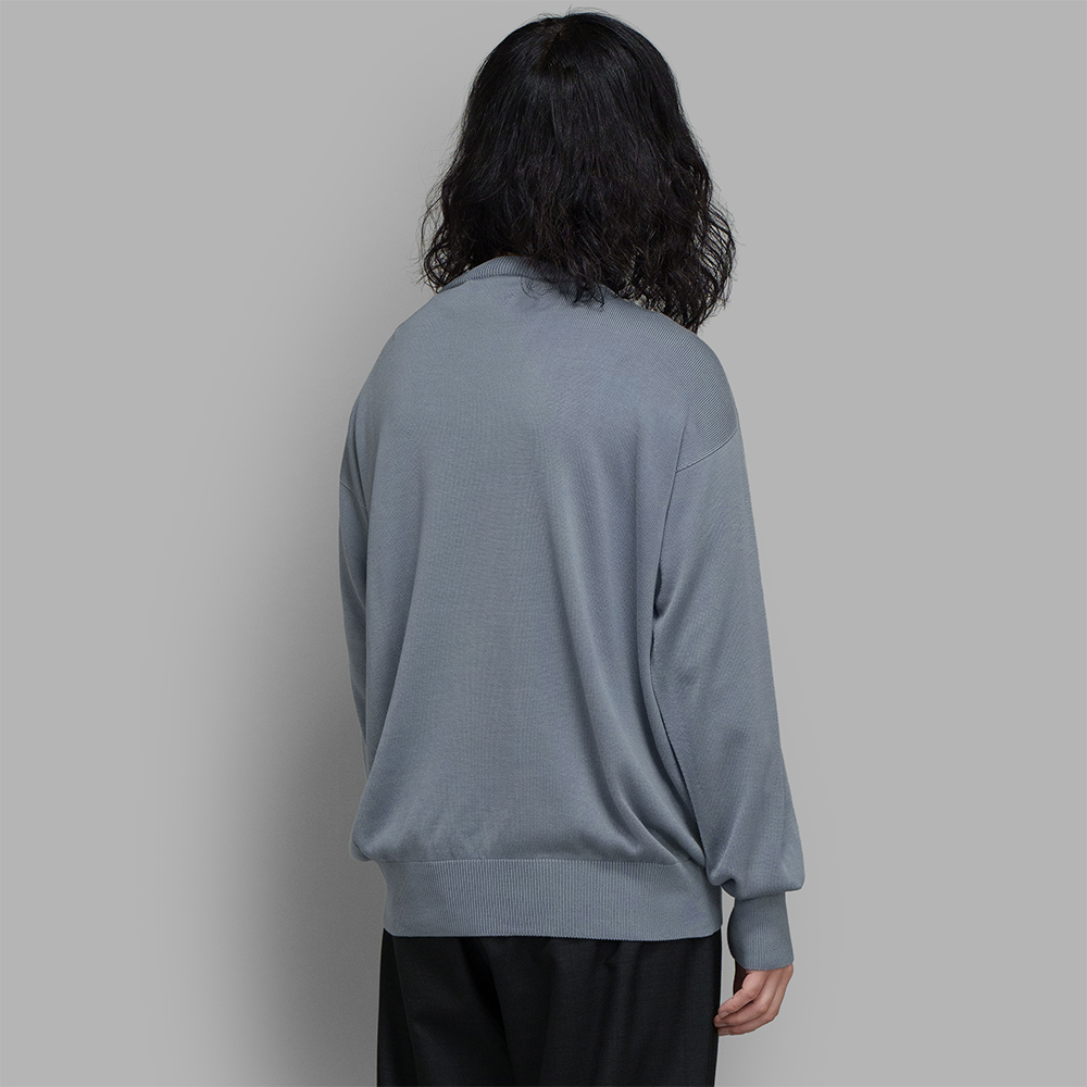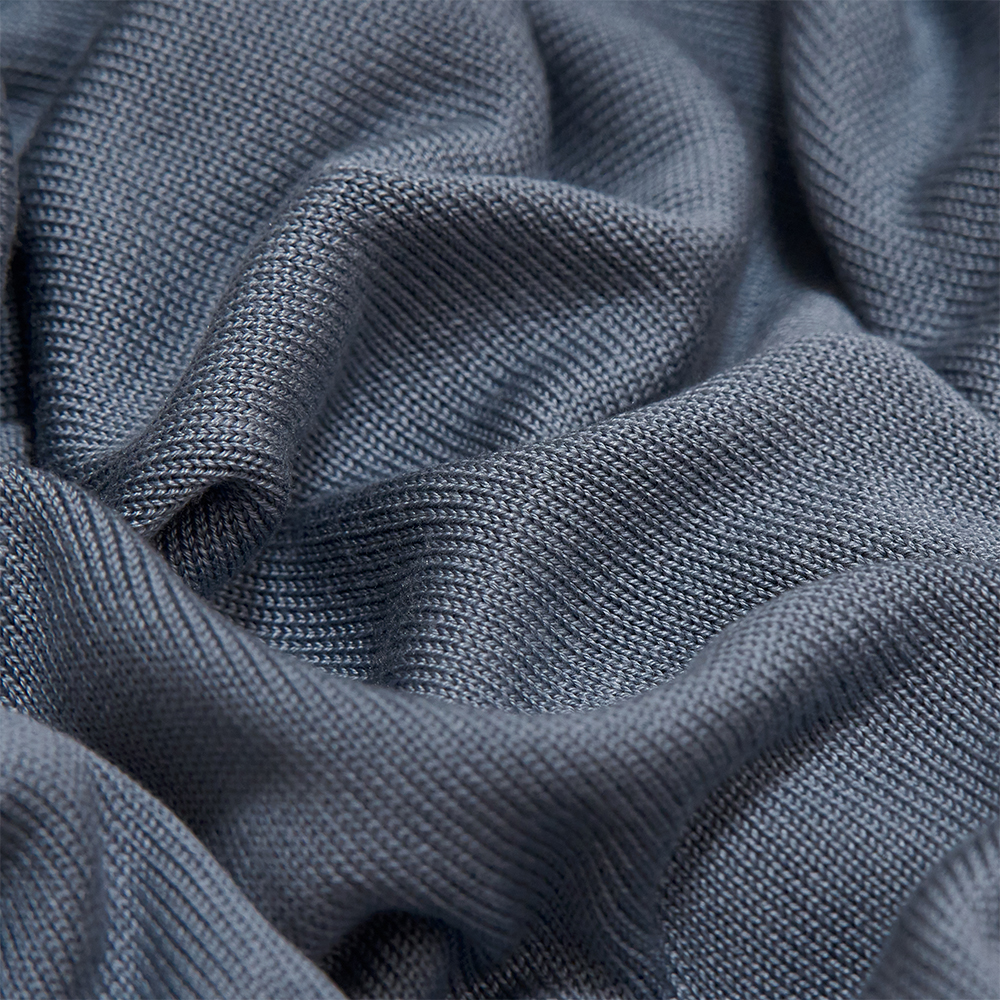 ボディはホールガーメントによる丸編み仕様で作られています。縫い代のごろつきがなく、立体的に編み上げられることで、身体のラインに自然に沿う着用感を実現しています。シルク本来の質感をダイレクトに感じられるのも特徴です。ゆとりのあるボディバランスに、ネックリブは程よく高さを持たせ、全体の印象を引き締めています。袖リブは折り返しても、そのままでも着用可能で、スタイリングに応じて印象を変えることが可能です。