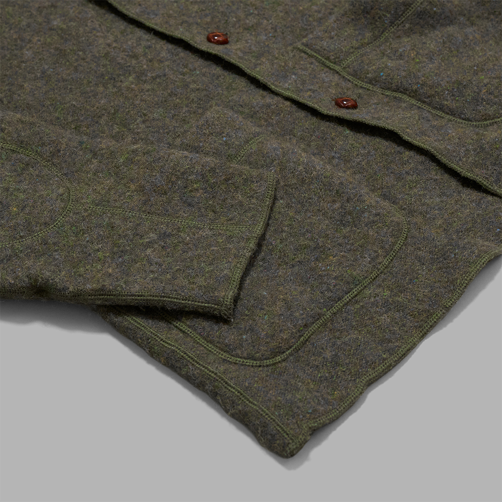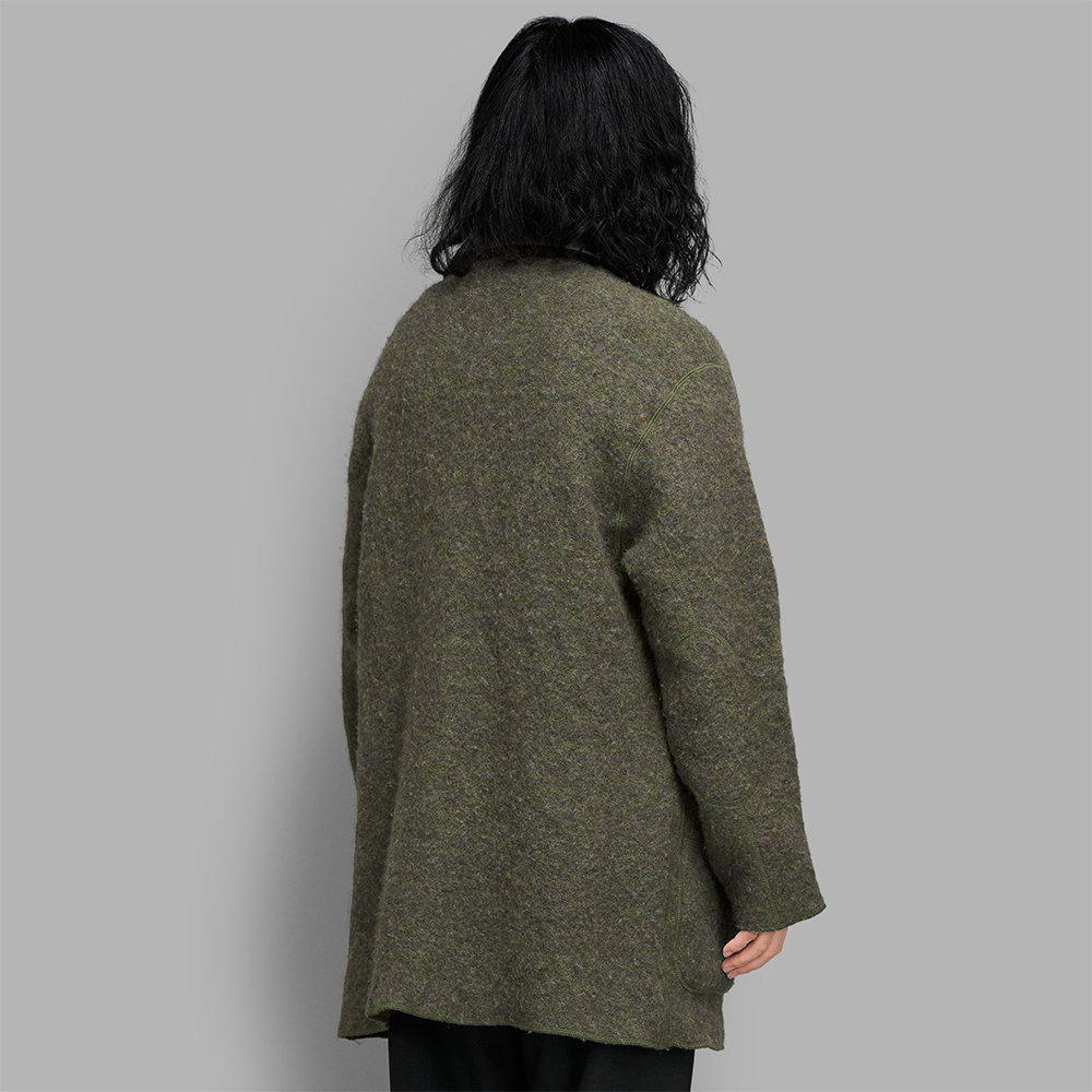 クラフト感を感じさせるステッチワークも印象的です。カーディガンとジャケットの中間のような佇まいも、ニットジャケットの魅力の1つです。シャツやニットと重ねるだけで、柔らかく雰囲気のあるスタイルをお楽しみいただけます。