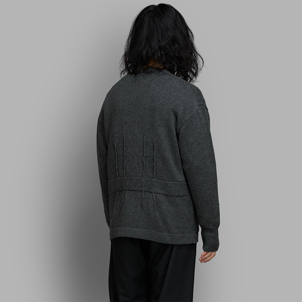 型は髙橋大雅のアーカイブに保存されていた、1930年代によく見られたジップアップのカーディガンをベースに、特徴的なポケットのディテールや、背中にベルトが縫い付けられたマルタンガル仕様を忠実に再現したデザインで、単体での着用も想定しながら、オリジナルに比べてややゆとりを持たせたシルエットに調整しています。