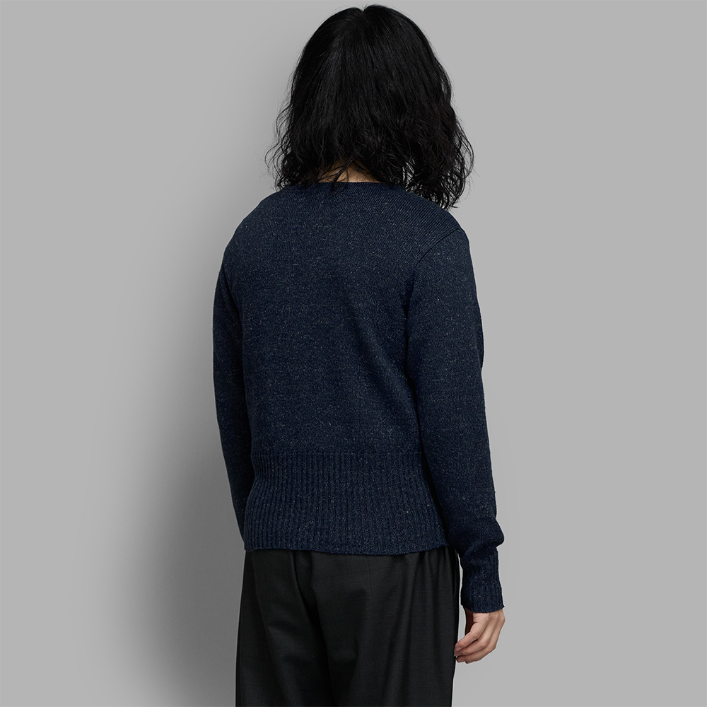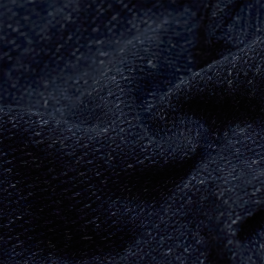 シルクとリネンの糸を混紡して編み上げることで、編み地の安定性を高めながら、古着特有のしっとりとしたドライタッチを表現しています。