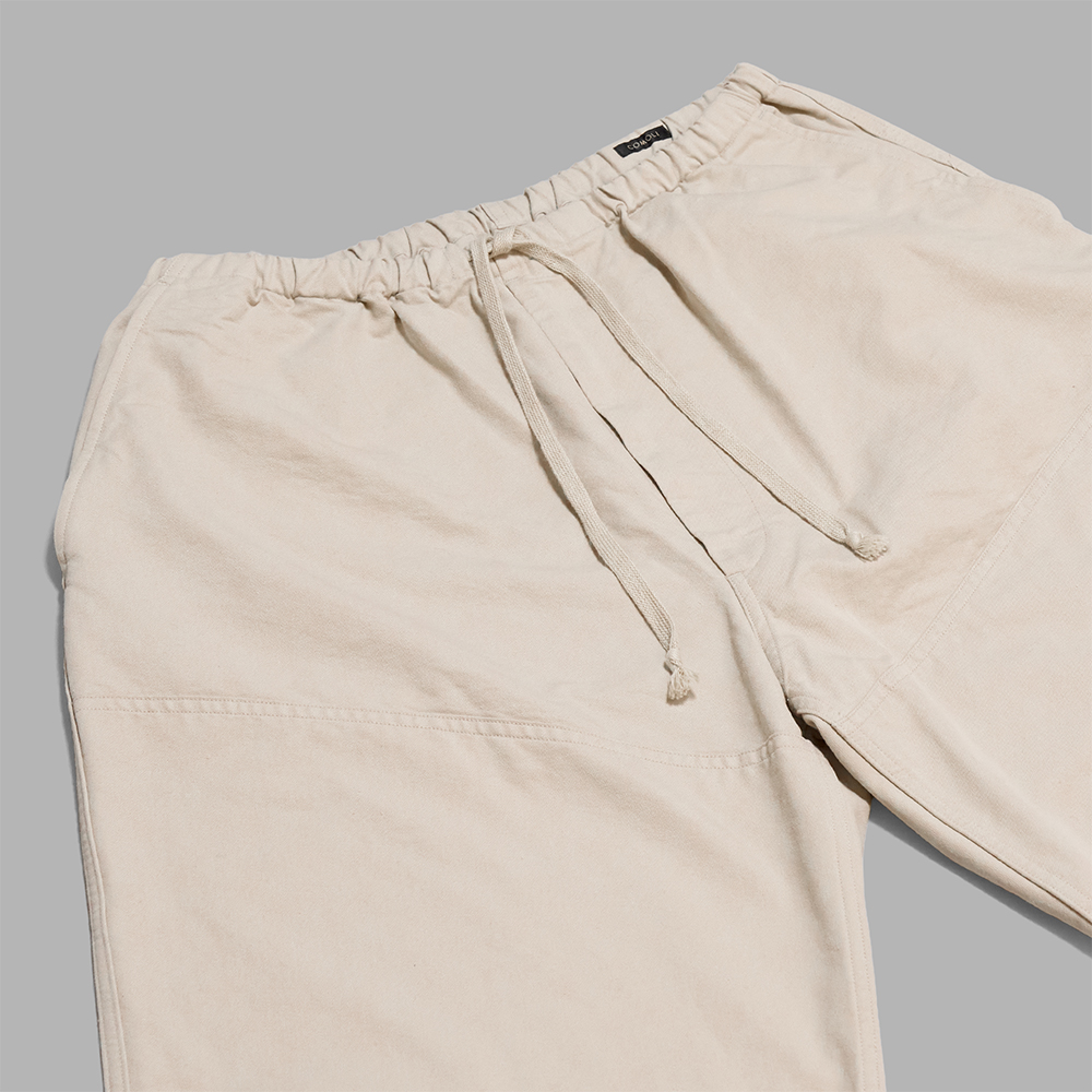 同ブランドらしいゆったりとしたフォルムのドローストリング仕様で、着こなしとシーズンにおける高い汎用性を誇るポストワークツイル素材で履ける点が魅力の1本です。同生地のトップスとの上下あわせもお勧めです。