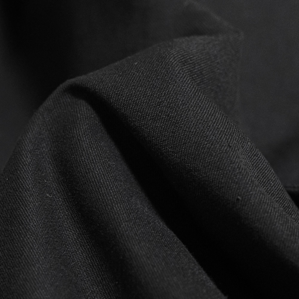 コットン・ポリ・ウールの3種の素材を使用し、程よい膨らみをもたせたツイル生地です。一般的なワークウェアに用いられる綿ポリのツイルとは異なる、適度なハリ感と風合いを少し感じる生地に仕上げています。