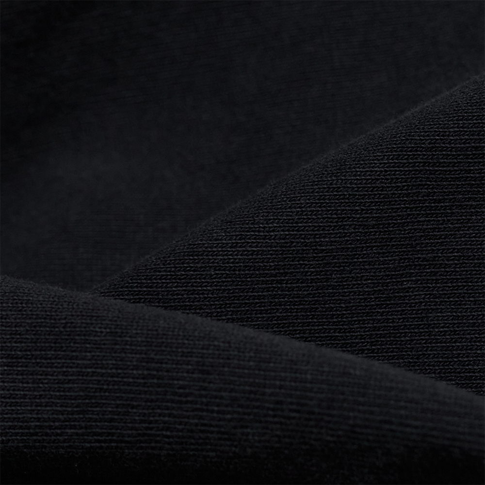 番手を解析し、ゲージや度目を細かく合わせて編み立てた、肉厚の空紡天竺を使用しています。太番手の空紡糸を引き揃えることで編み目を際立たせ、ヴィンテージ感のある雰囲気に仕上げています。