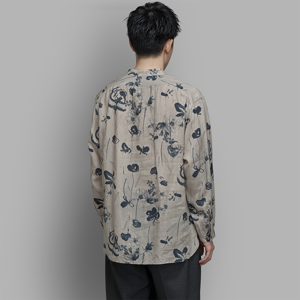 calmlence / Band Collar Shirt (L.Gray Print)