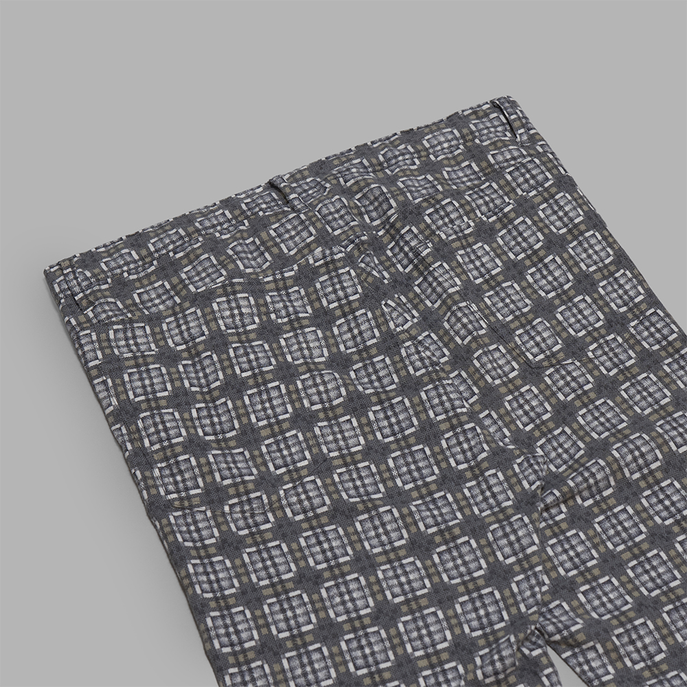 1940〜50年代のプリントネル素材をリファレンスに製作されたビスポーク生地を使用しています。当時のプリントは主に手作業によって施されており、生地表面を抜けて裏面にまでインクが付着する「裏抜け」が特徴であることから、繊細なチェック柄も崩れないように5版のハンドスクリーンプリントで丁寧に表現し、後起毛加工により柄の深みと独特の風合いを表現しています。