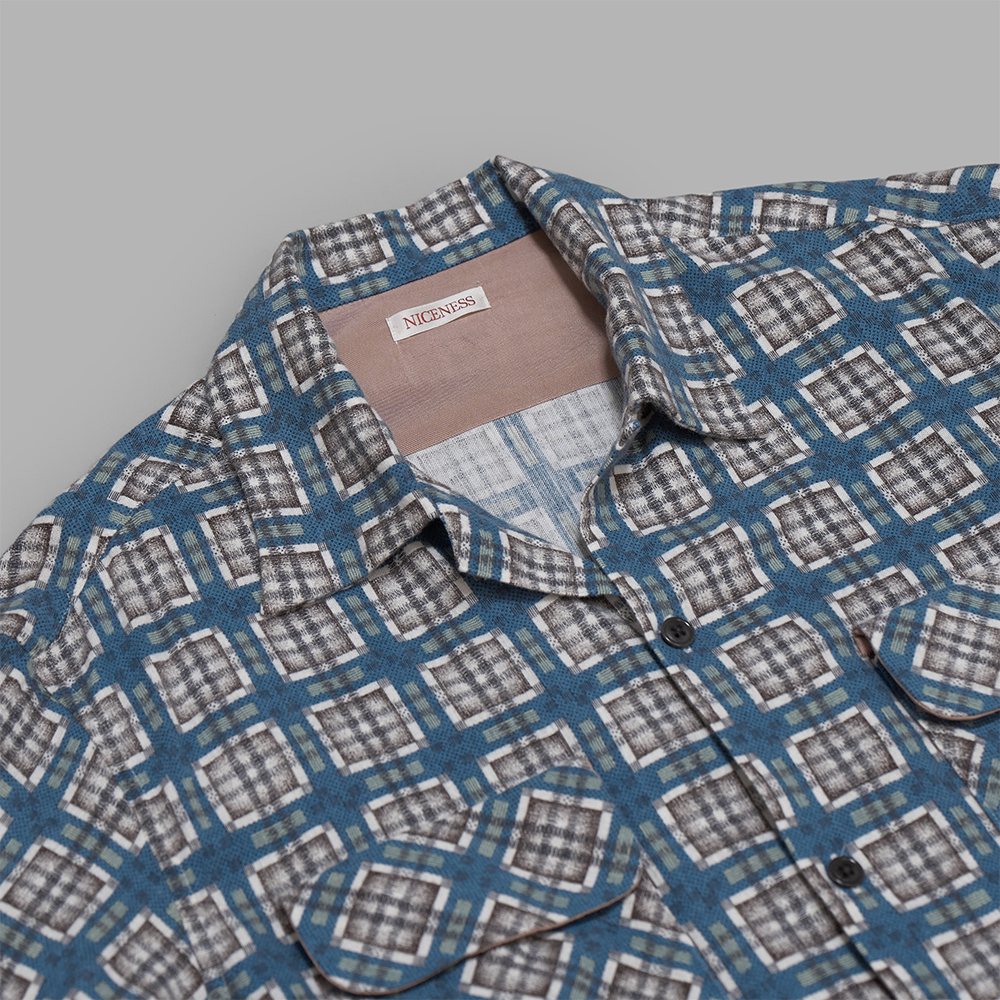 NICENESSのプリントネルチェック ボードシャツです。