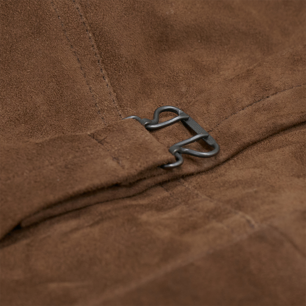 ・スウェード製の為、スウェードの無駄毛が下に着ている衣類、又は鞄に摩擦で付着する場合があります。ご着用や保管の際は注意して頂き、付着した毛はブラッシング又は粘着テープなどで取り除いてください。