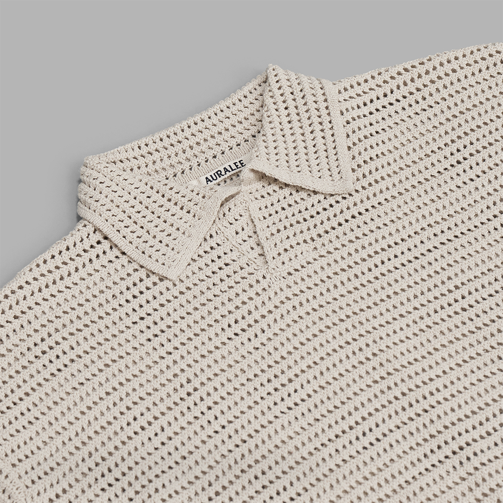 AURALEE / Tussah Silk Cotton Mesh Knit Skipper Polo (Ivory)
