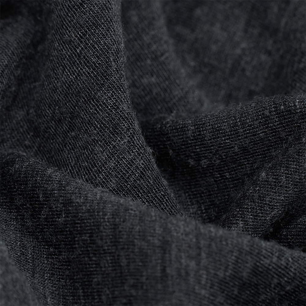ウールとコットン混紡されたジャージー素材を使用しています。“スーパーウール”と名付けられた同素材は、なめらかでとろみのあるタッチ感が特徴的で、表面は奥行きのある表情を持たせ、裏面にはミニパイルのような組織で格別な肌触りの良さを実現しています。