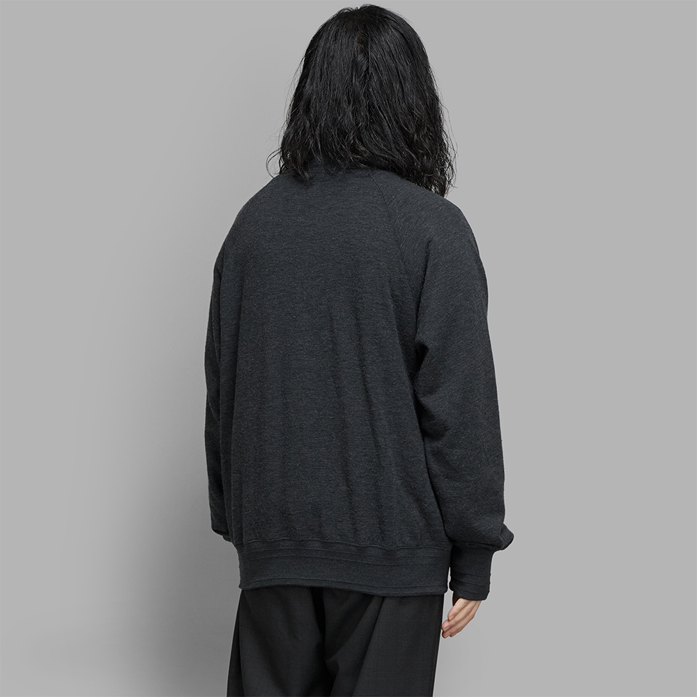 ウールとコットン混紡されたジャージー素材を使用しています。“スーパーウール”と名付けられた同素材は、表面は奥行きのある表情を持たせ、裏面にはミニパイルのような組織で格別な肌触りの良さを実現しています。