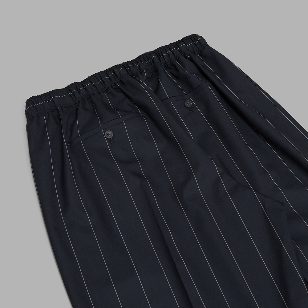 POSTELEGANT / Wool Ex Wide Trousers (Navy Stripe)