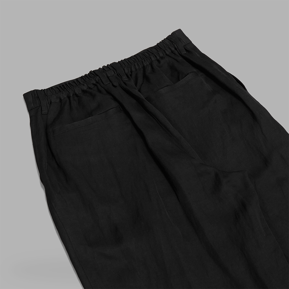 ツルッとした質感や、リネンの接触冷感機能によるさらっとした着心地は暖かい気候に適した1着です。また、光沢のある生地にワッシャー加工を施すことで、光の当たり具合によって陰影が生まれ、奥行きのある表情も魅力です。合わせとして、カットソーやシャツなどのシンプルなアイテムと合わせた着こなしもおすすめですが、同素材のシャツと合わせた合わせたセットアップスタイルもおすすめです。