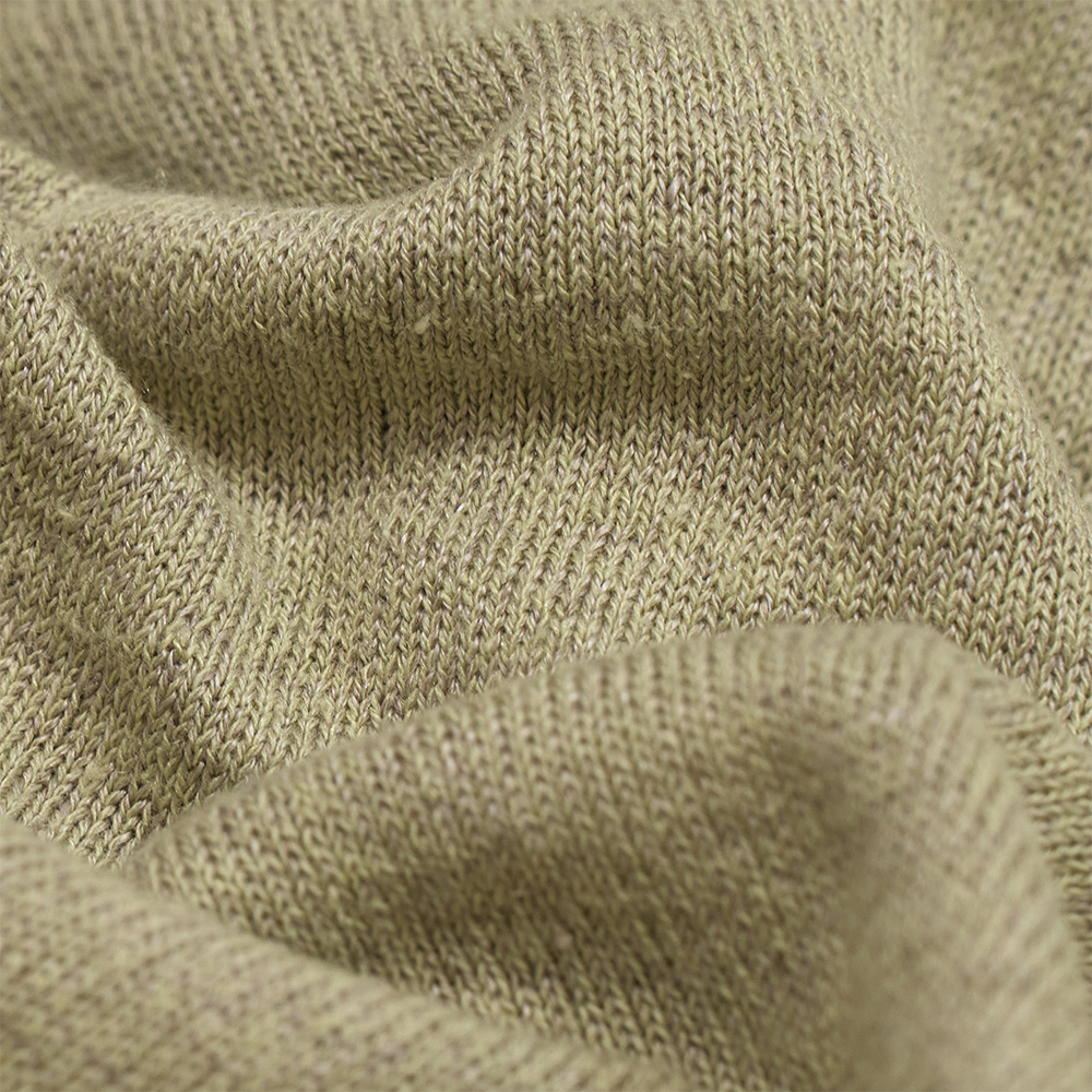 リネンの風合いとドライな質感に、シルクの滑らかさとしなやかさを掛け合わせた素材を使用しています。杢感のある奥行きのある色合いも特徴です。