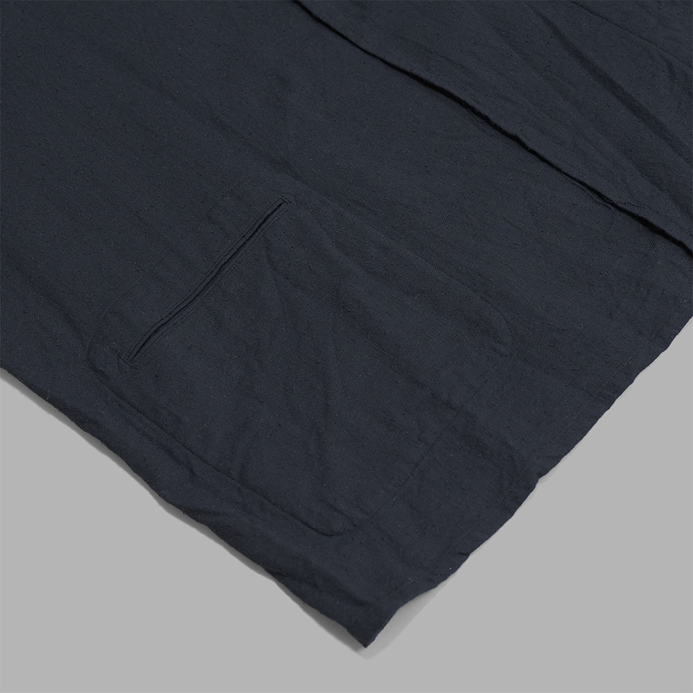 ネップ感のあるコットンとシルクのツイル生地を使用しています。重く感じすぎない絶妙な黒のトーンは、やや薄めの乾いたような色味で、同系色で合わせた際にも生地の風合いが際立つような雰囲気のある生地です。