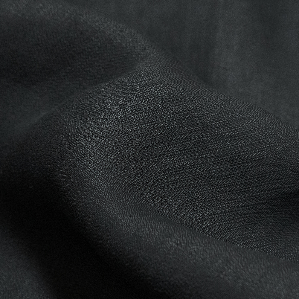 大麻の糸を用いて、綾織をベースにしたブランドオリジナルの大麻素材を使用しています。特殊な織りによって生まれる、細かい波のような表情が特徴的な素材です。春夏に適した薄手の生地感でありながら、素材の持つハリがあるため綺麗なシルエットで着用することができます。
