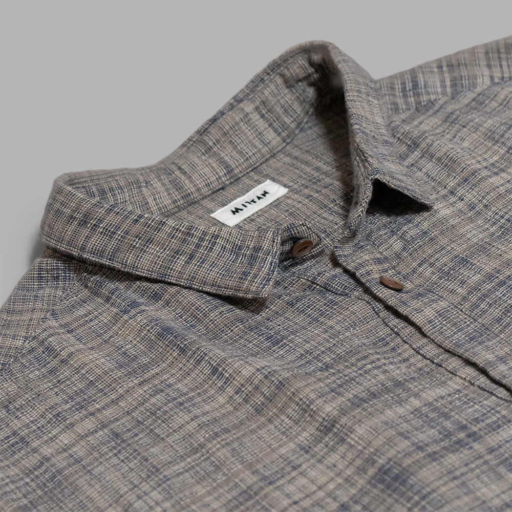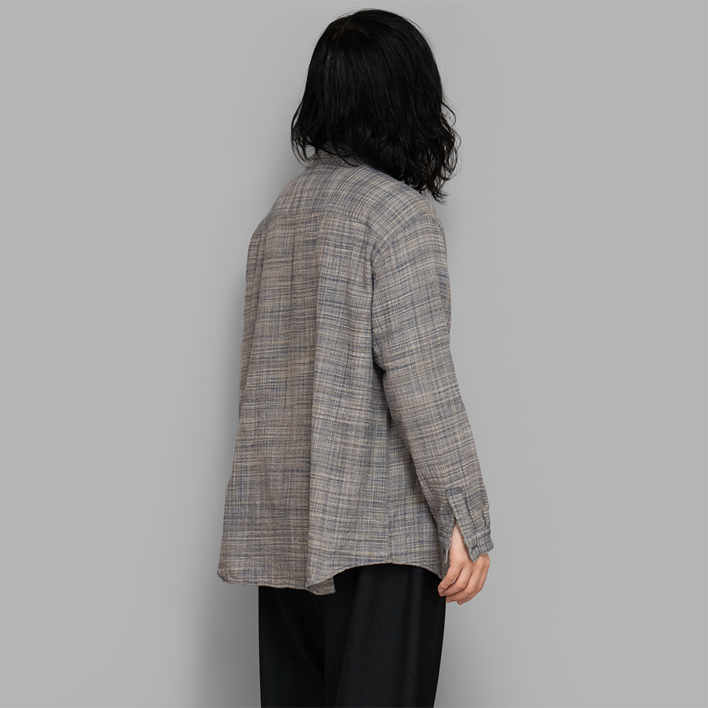 ミニマルなデザインながらも、手織りのようなふっくらとした質感や不均一な糸ムラによって、雰囲気の良い1着に仕上がっています。薄手で、凹凸による風通しも良いので夏場の着用に適したシャツです。