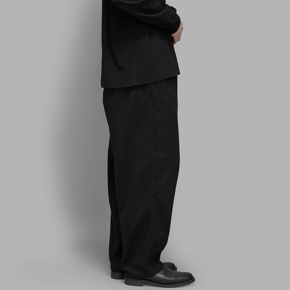 COMOLI / ブラックドリル テーパードパンツ