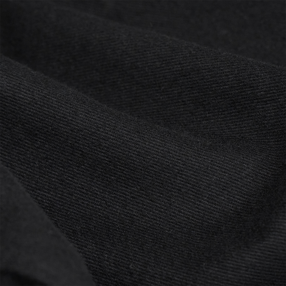 柔らかく微起毛感のあるブラックドリルの生地を使用しています。着込んでいくと少しずつ色が褪せてきて、より一層雰囲気が増します。