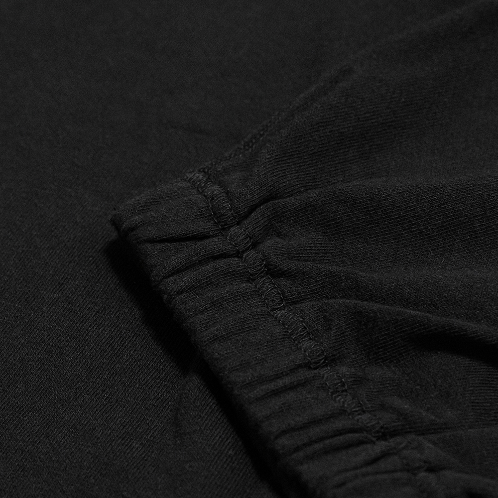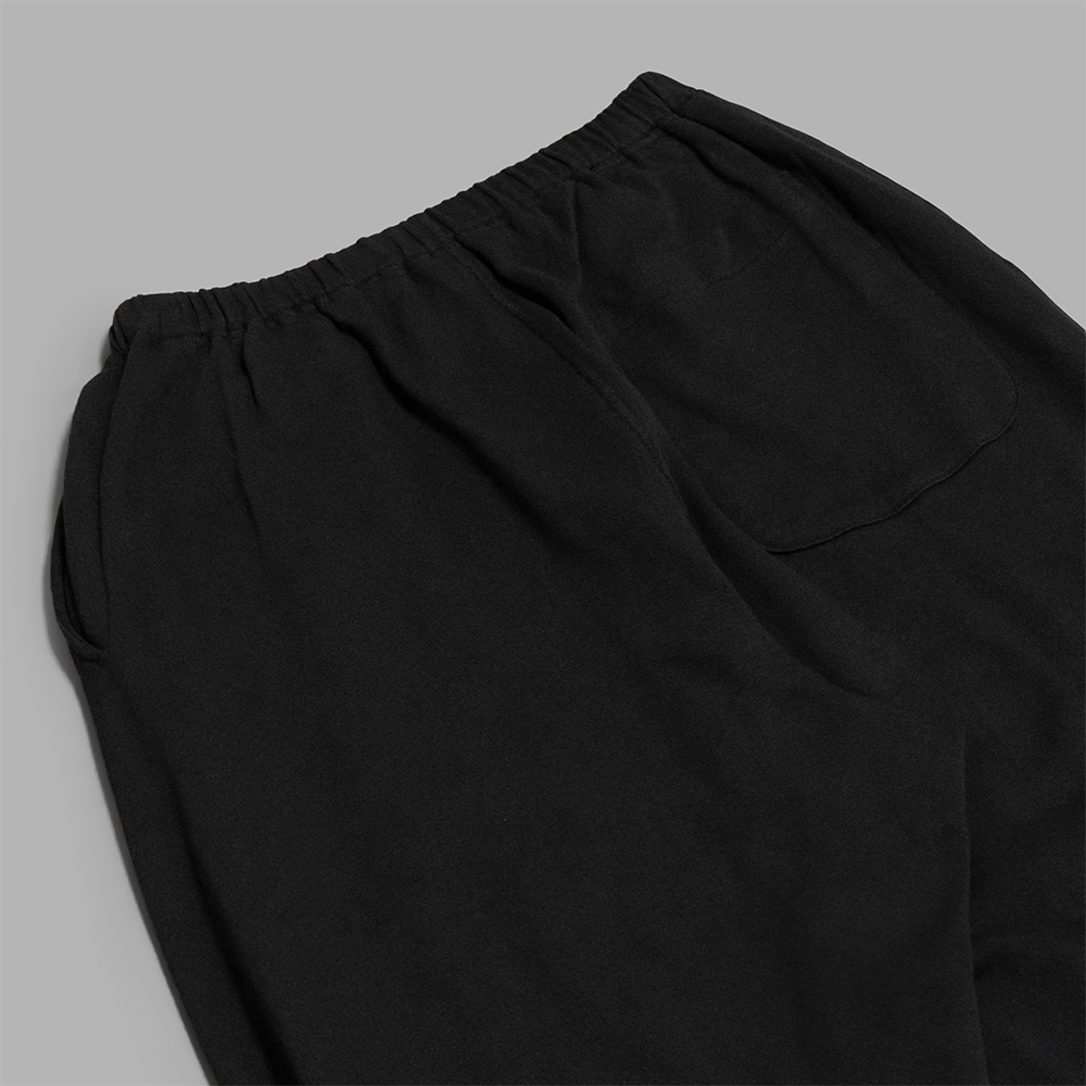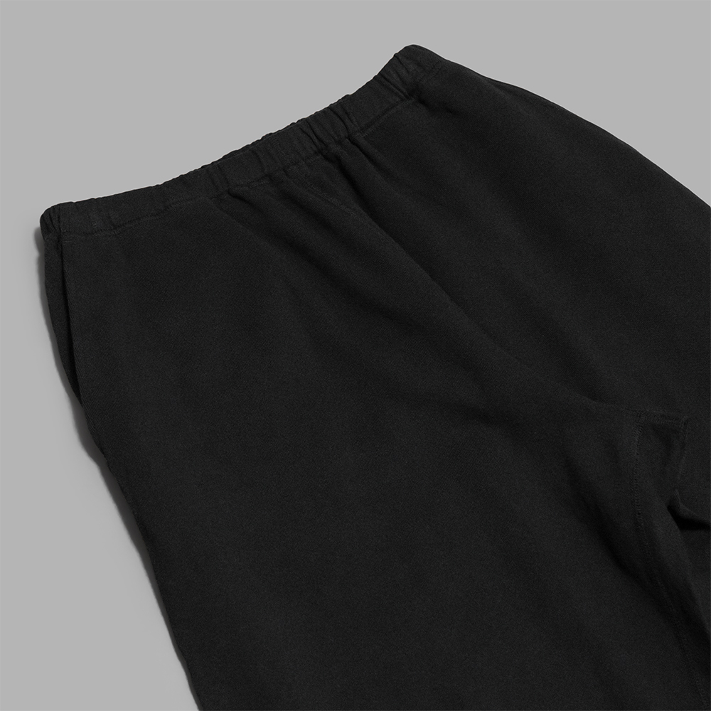 型はゆったりしたサイズ感で作られたスウェットパンツです。腰回りにゴムとドローコードを通し、裾はリブの仕様です。前立て開きはありません。