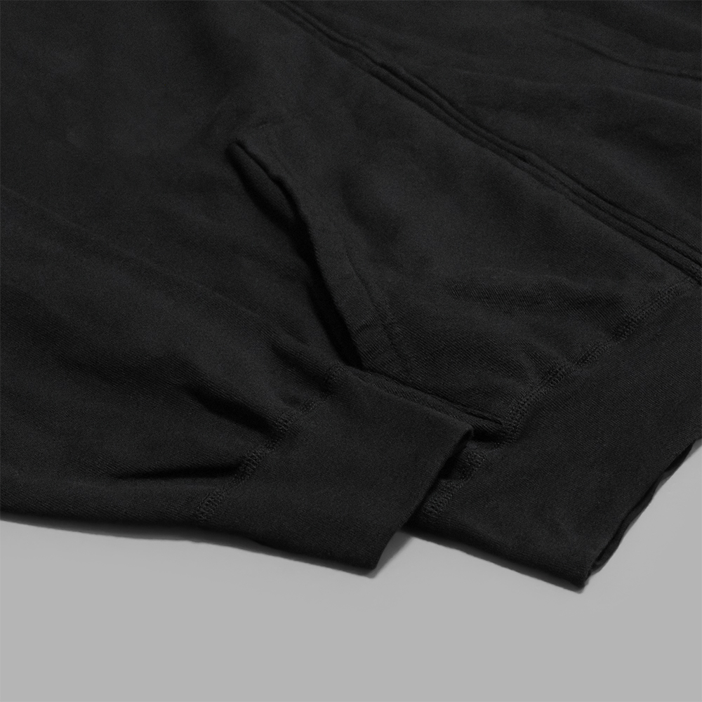 一般的な裏毛素材のような膨らみがなく、くたっとした少し力の抜けた印象のスタイルを作ることができます。実用性の高さに加え、雰囲気のある着こなしも楽しめる一着です。
