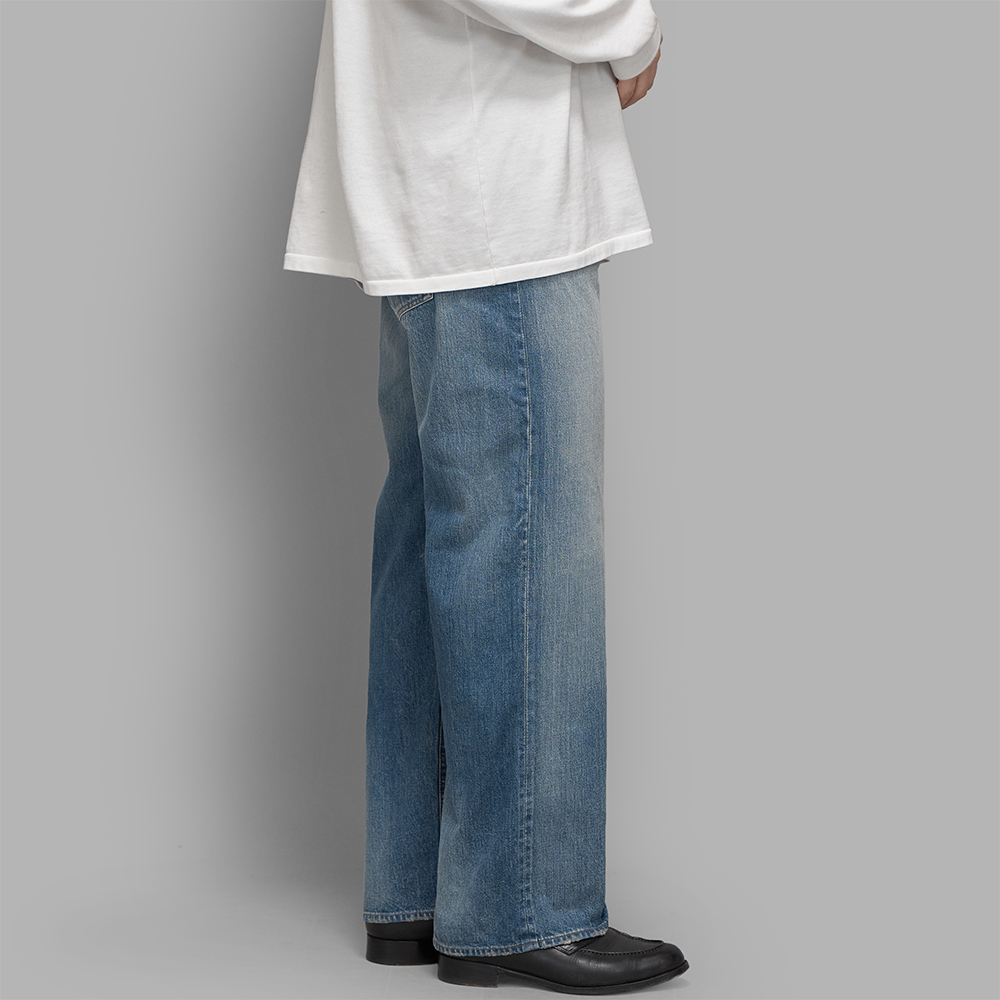 秋や春には、テーラードジャケットやシャツに合わせて、夏場にはTシャツ一枚でも様になる1本です。当時のデニムらしいやや軽めのオンス感の為、年間を通して着用することができます。