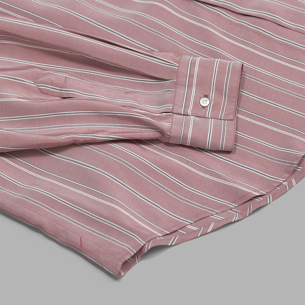 比較的カジュアルな雰囲気のあるアイテムですが、襟元は少しカチッとさせ、リラックスした雰囲気の中にも、気品を感じられる同ブランドらしい、美しいシャツに仕立てられています。特徴的なマルチストライプ柄は、羽織としては勿論のこと、インナー使いとしても程よいアクセントとなり、一着で幅広いスタイリングをお楽しみいただけます。また、ご家庭で手洗いでの洗濯も可能なので、デイリー使いしやすいのも魅力の一つです。