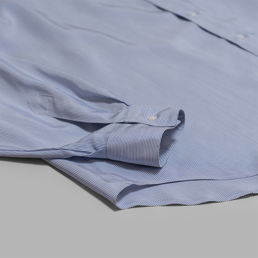 比較的カジュアルな雰囲気のあるアイテムですが、襟元は少しカチッとさせ、リラックスした雰囲気の中にも、気品を感じられる同ブランドらしい、美しいシャツに仕立てられています。加えて、マクロストライプ柄は主張が控えめなため、スタイリングに馴染みやすいのも特徴の一つです。また、ご家庭で手洗いが可能なので、デイリーに気兼ねなくお使いいただけるのも魅力のひとつです。