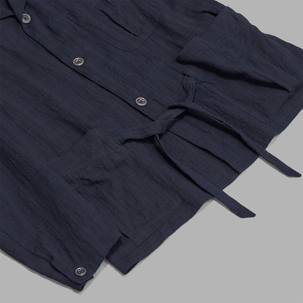 型は、イギリスのカバーオールジャケットをリファレンスに、フランスのクラシカルなジャケットの要素をに取り入れ、異なる文化圏のワークウェアを現代的な感性で融合し、デザインされたカバーオールです。内側は裏地のつかない一重の仕様で、シャツのような軽い着心地にしています。