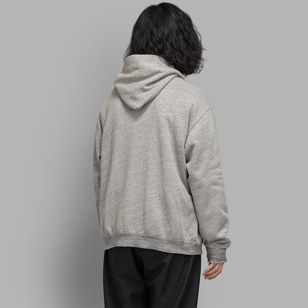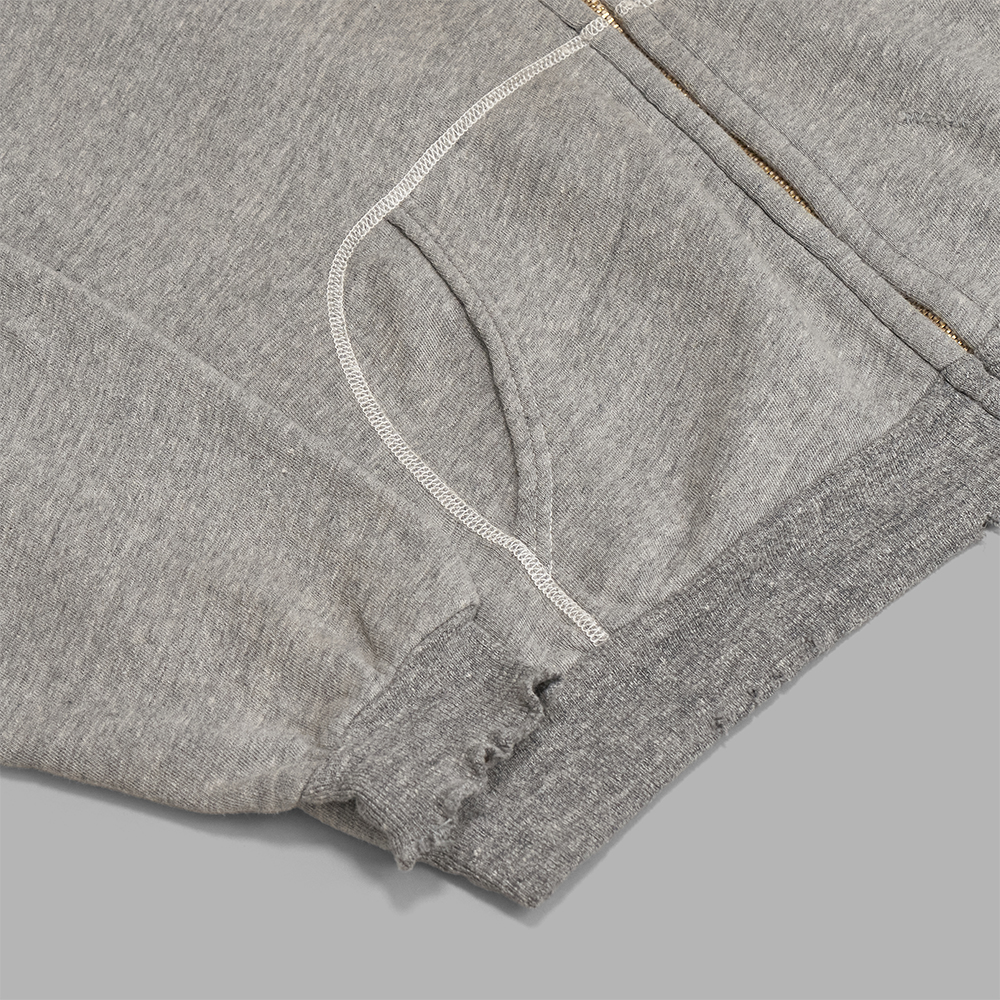 デザインは、60's前後のヴィンテージのZIPパーカをイメージしています。薄く伸びきって緩くなったリブをあえて再現し、崩れたシルエットに設計していることが特徴です。4本針ミシンで縫い付けられた腰ポケットも、ヴィンテージならではのディテールです。