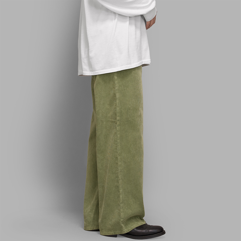 AURALEE / Garment-Dyed Finx Corduroy 5P Wide Pants (Dusty Green)