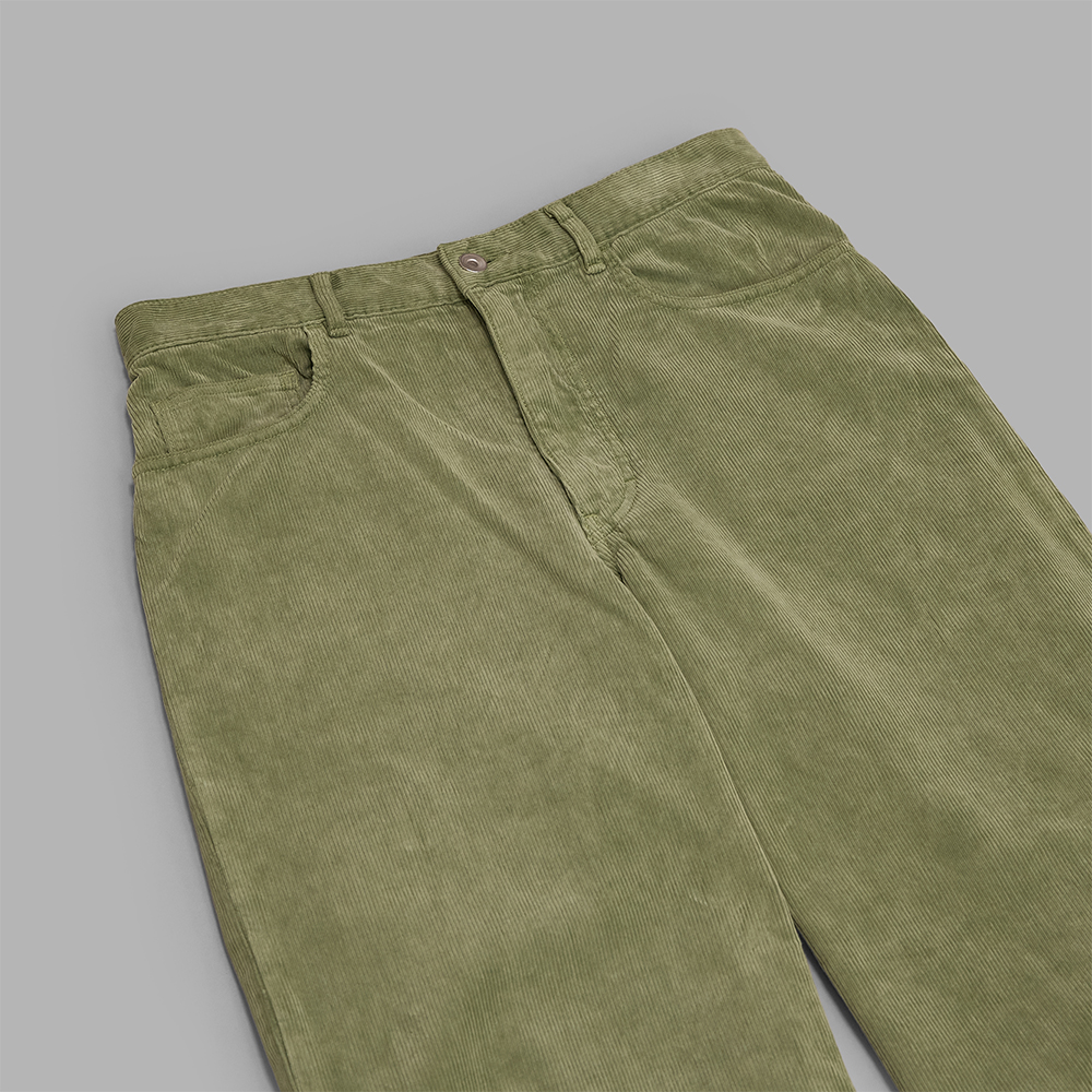 エジプト産の超長綿フィンクスコットンを贅沢に使用したコーデュロイ素材を使用しています。縫製後に製品染めを施しておりますが、良質な原料による、しなやかさや滑らかなタッチは損なわれずに、ムラを感じる独特な色味を表現しています。