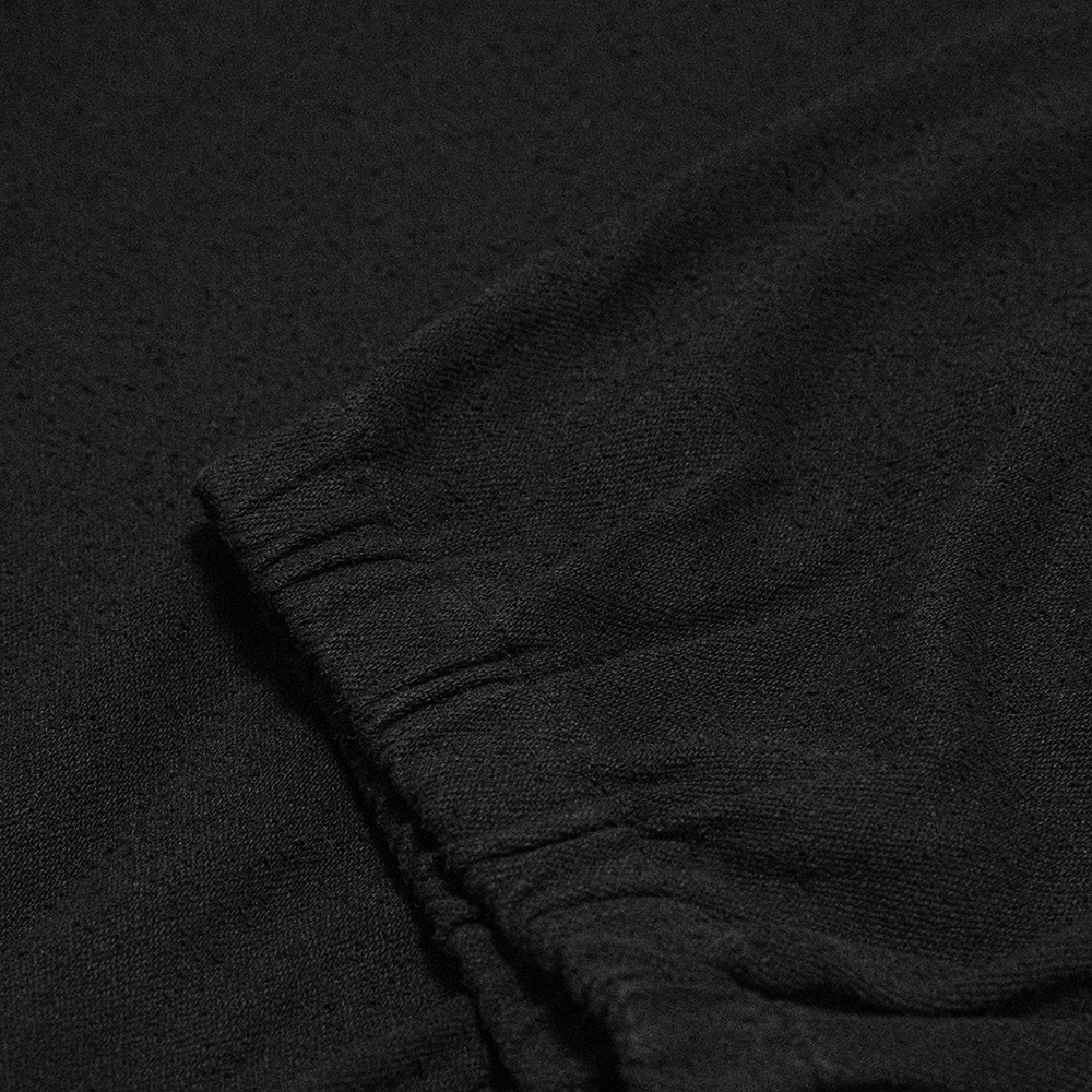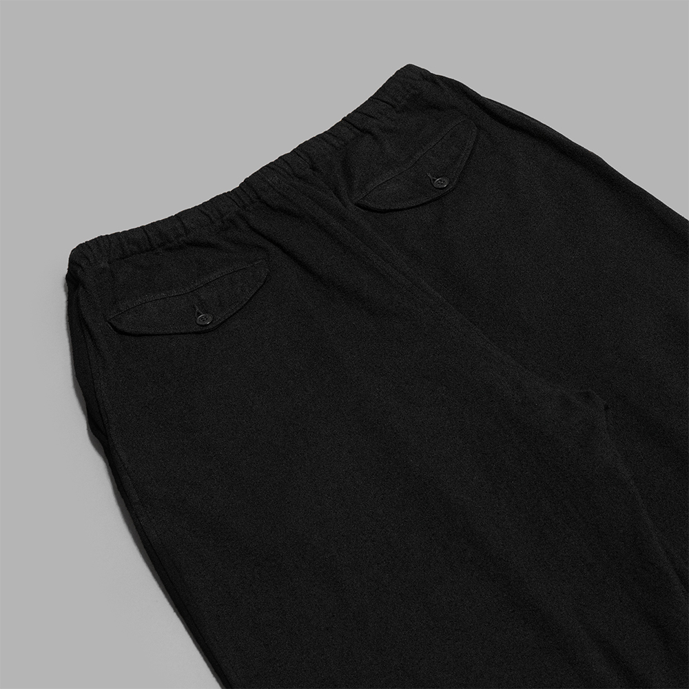 仕上げに、ブラウンで製品染めをして、ほんの少しだけ日焼けで色褪せたようなブラックの色味にしています。同素材のジャケットも展開されており、上下であわせることもできます。