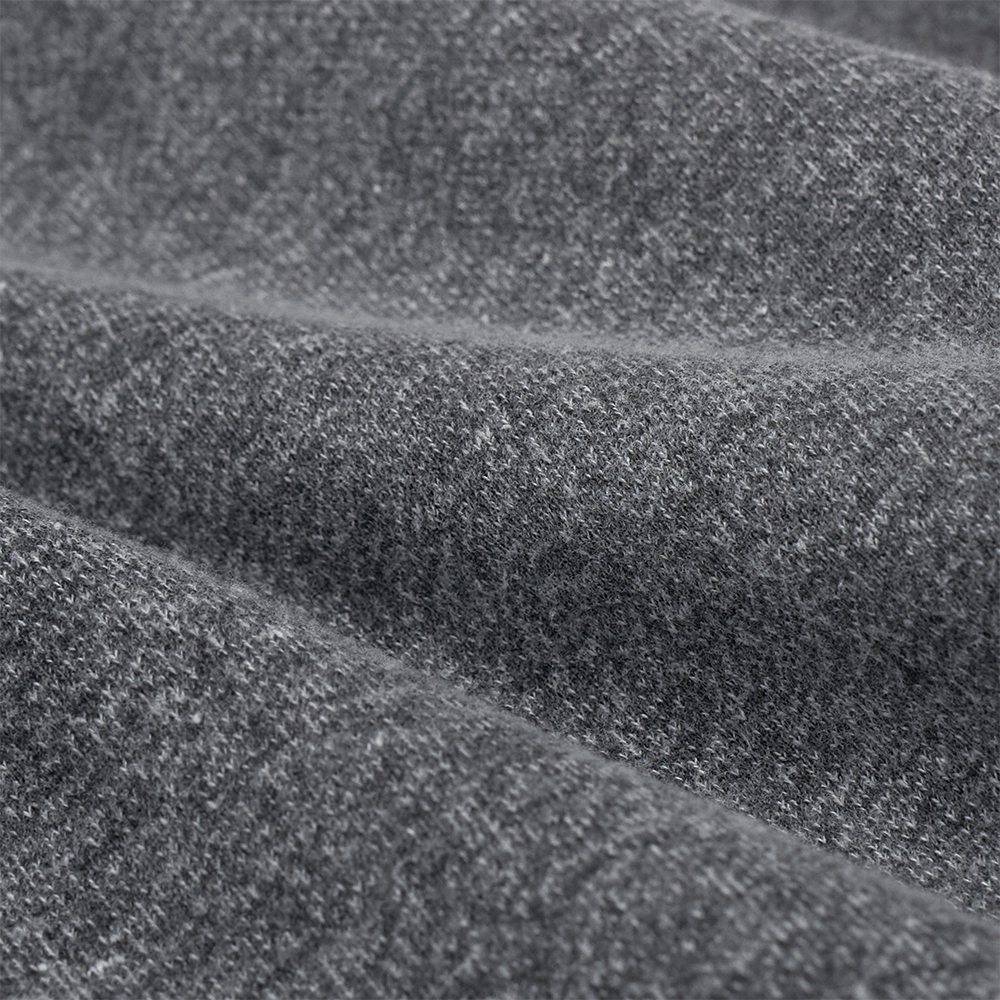 肉感はありながら柔らかくふっくらとした質感の、吊り編み機で編み立てた丸胴の裏毛生地を使用しています。大正時代に日本に入ってきた吊り編み機は、現在、世界で唯一、和歌山県で稼働しており、1時間に1メートルしか編むことができないため、とても非効率ではあるが、ゆっくり時間をかけることで空気も一緒に編み込んだような、程よいムラ感のある独特な風合いの生地に仕上がります。
