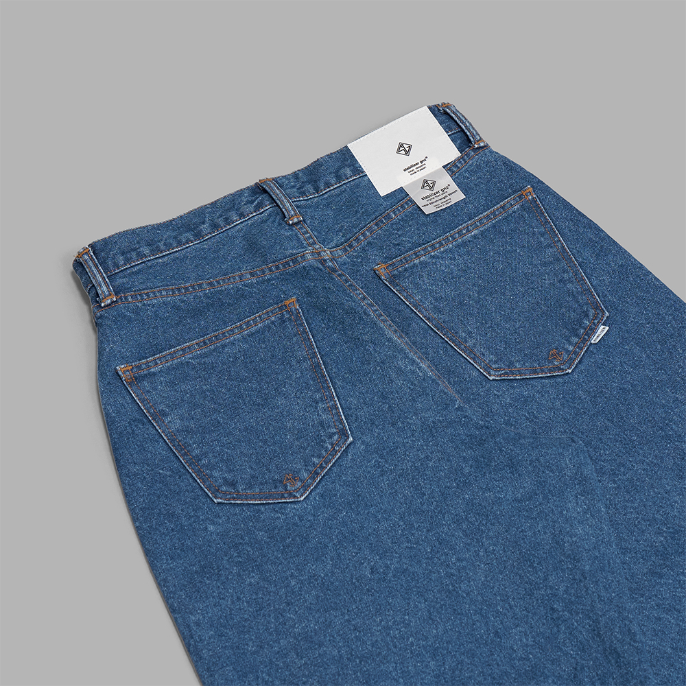 一度限りの展開として、26SSシーズンでは、ブランド別注のセルビッチデニムのリジットではなく、1990年代のデニムをリプロダクトした14ozのオープンエンド糸のデニムを使用しています。通常は行わない製品加工を施している点も特徴です。加工は、タテ落ちせず、全体的に波打つような表情でフェードする仕上がりです。