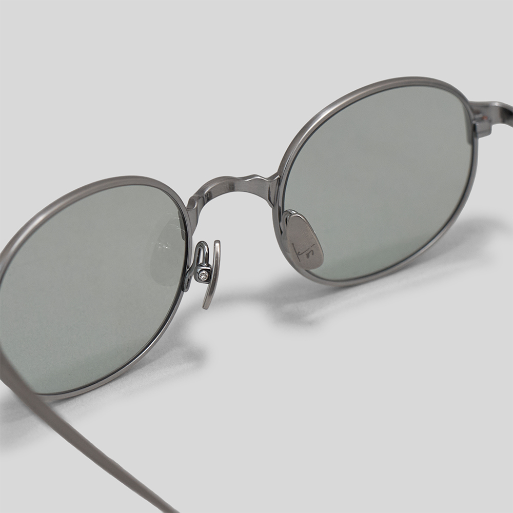チタン素材をベースに、緩やかな曲線で描かれるフォルムで作製されています。自然の造形美を表現されていることにより、メタルフレームでありながら、柔らかい印象に仕上がっています。