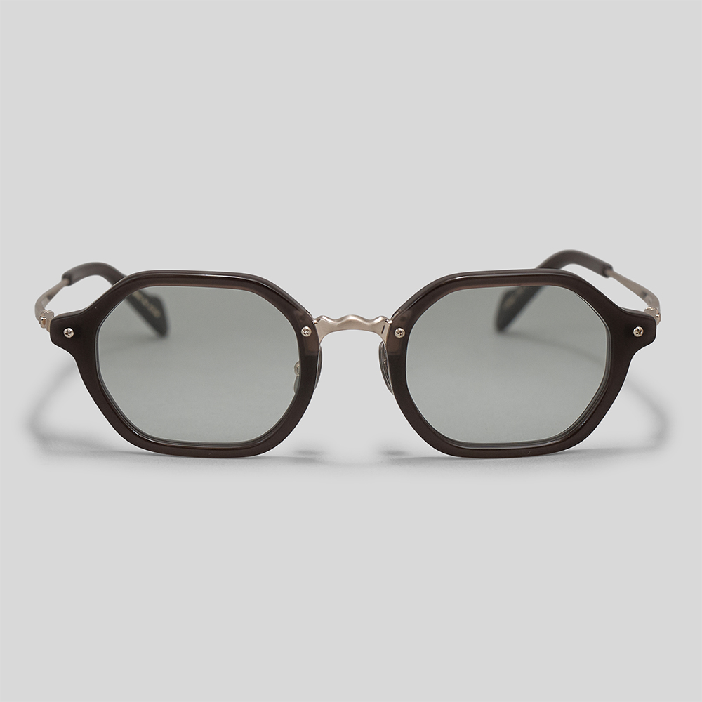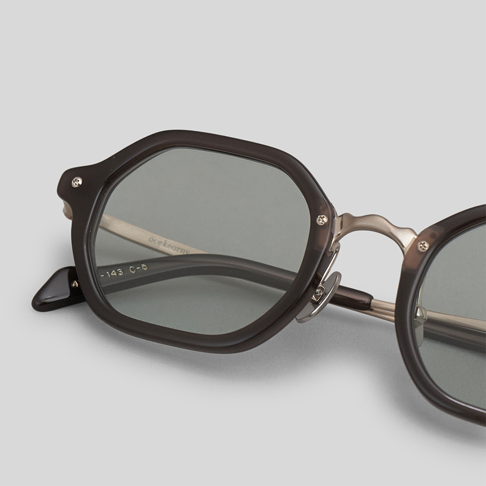 型は、六角形をベースに、角を程よくラウンドさせ、天地幅やフレーム幅を微調整することで、柔らかな印象の中にも、シャープな雰囲気を感じられるデザインです。