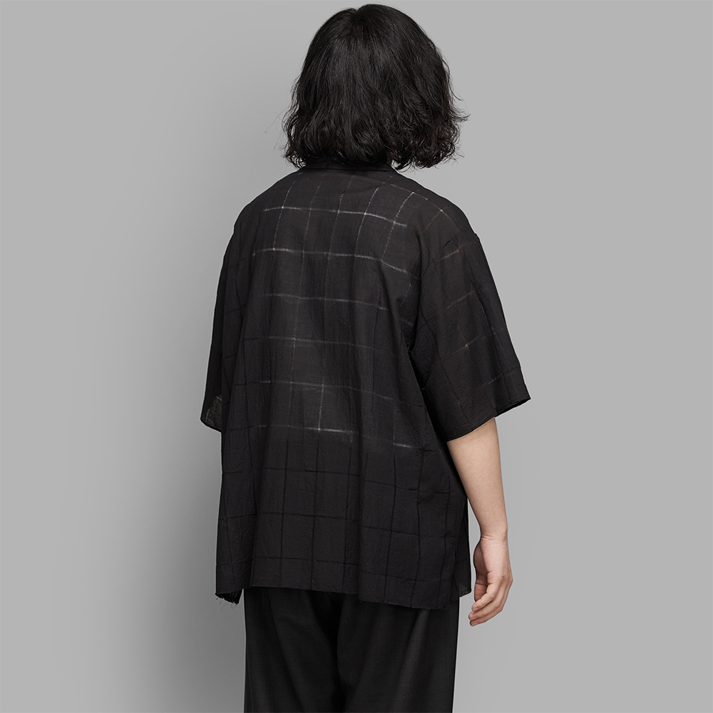 手作業によるクラフト感を残しながら、シアー感のある軽やかな上品さを感じさせるシャツは、ベーシックなスタイリングに合わせるだけで程よくアクセントとなり、夏らしい軽やかなスタイリングをお楽しみいただけます。合わせとしては、シンプルに上質なスラックスとの合わせは勿論、暑い時期はショーツとの合わせもおすすめです。