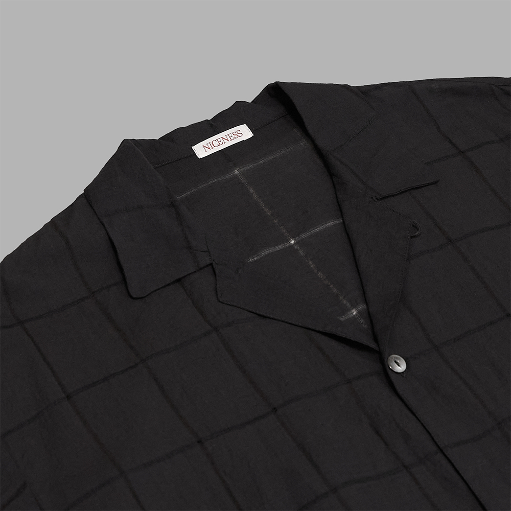 NICENESSのハンドカットラティスファブリック オープンカラーシャツです。