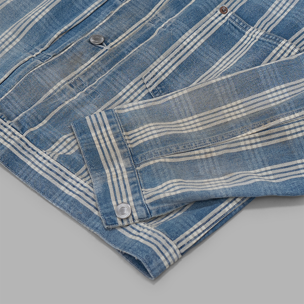 デザインは、1920年代頃にハワイに移り住んだ日系人によって作られたインディゴチェックを採用し、同年代のS213ジャケットをベースに組み合わせています。フロントの4つボタン仕様や、やや低めに設定されたポケット位置が特徴で、ミニマルな印象に仕上げています。