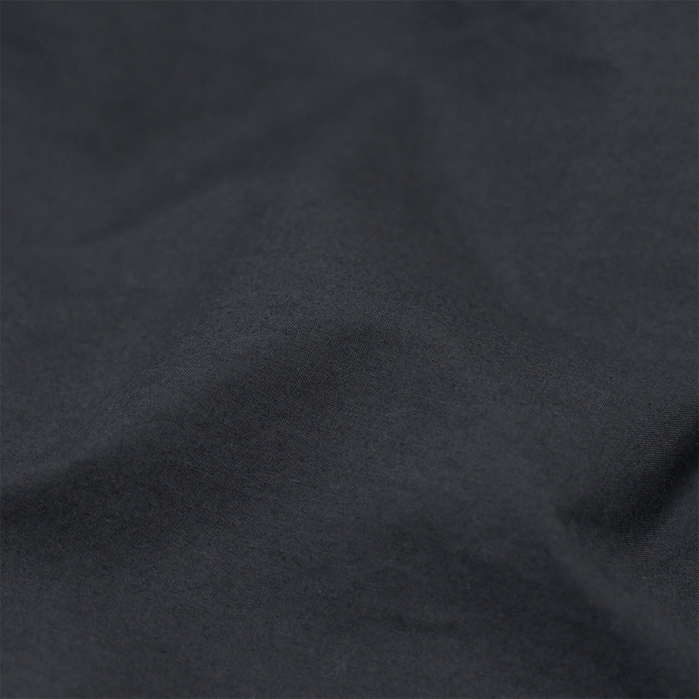 素材は、細いコットン糸を高密度で平織りした、タイプライター生地を使用しています。仕上げに製品洗いをかけることで、ナチュラルなアタリやシワ感を表現しています。