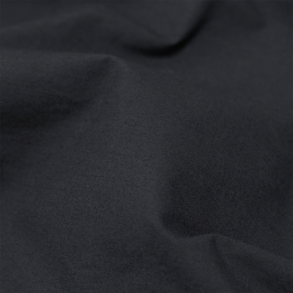 素材は、細いコットン糸を高密度で平織りした、タイプライター生地を使用しています。仕上げに製品洗いをかけることで、ナチュラルなアタリやシワ感を表現しています。
