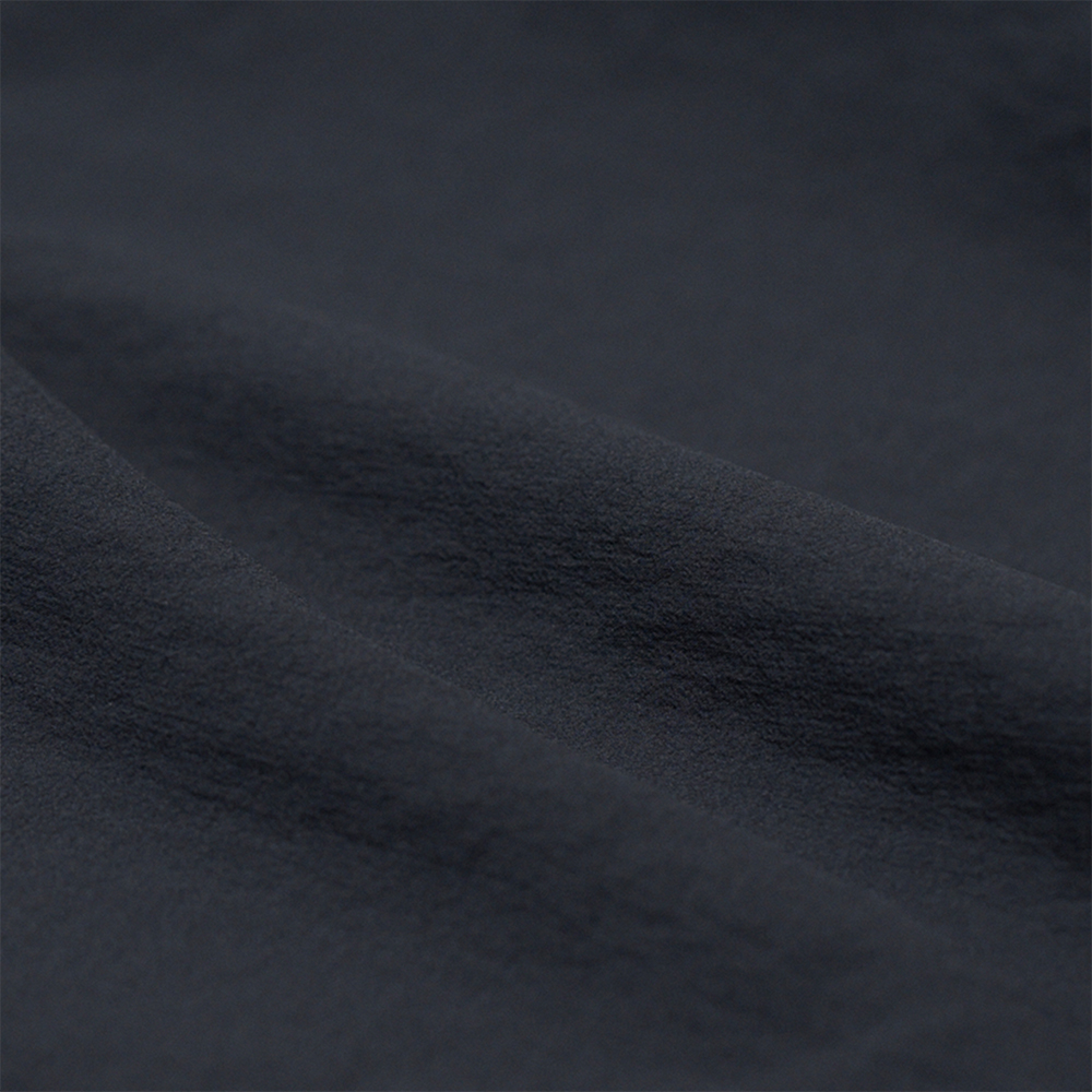 素材は、超軽量ナイロン素材を使用しており、特殊紡績により生地のワッシャー感を表現しています。薄手の生地ですが、程よくハリのある生地を使用することで、着用した際に膨らみすぎず、シルエットを綺麗に見せてくれます。また、破水加工も施されているので、天候を気にせずに着用しやすいのも特徴です。