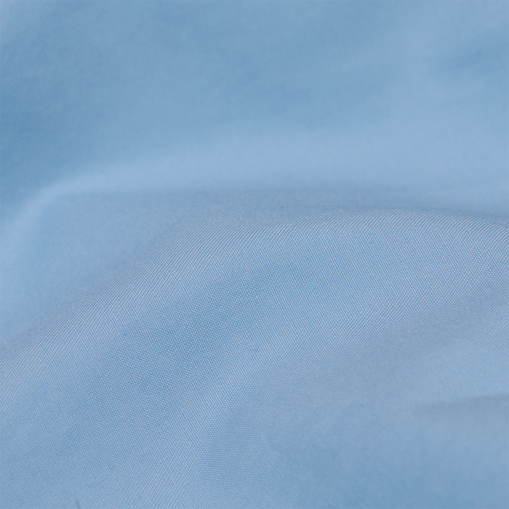 エジプトの超長綿であるフィンクスコットンを極細番手に紡績し、しっかりと高密度に織り上げたツイル素材を使用しています。生地を硬直させる加工をかけたのち、何度も叩いて揉み洗いをすることで、柔らかな風合いに仕上げています。シルクのようなしなやかな肌触りと上品な光沢が特徴の生地です。