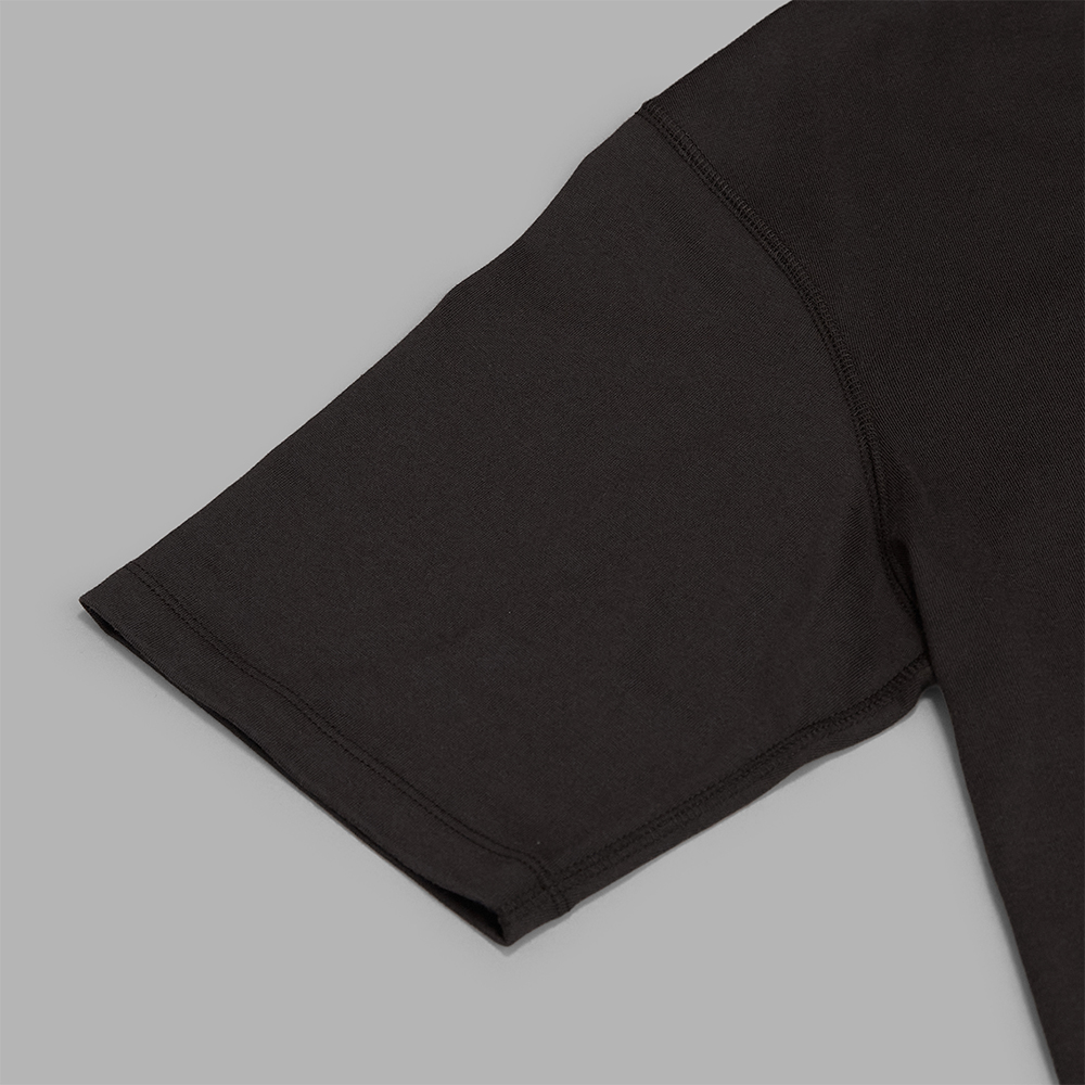 型はUSミリタリーのヘンリーネックTシャツをベースに再構築しています。身頃やアームホールに適度なゆとりをもたせ、単体着用としても成立するサイズバランスで作製されています。