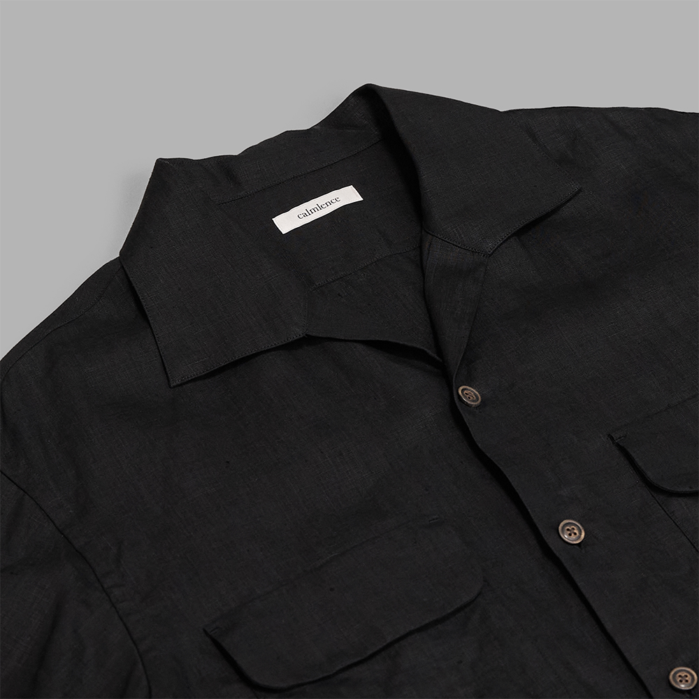 製品で水洗いと天日干しを施して素朴な表情に仕上げています。アイテムの雰囲気をより一層高めている水牛釦の表面に焼き加工を施した陶器のような質感の釦もポイントです。半袖シャツらしい清涼感がありながら、雰囲気のある着こなしを楽しめる1着です。
