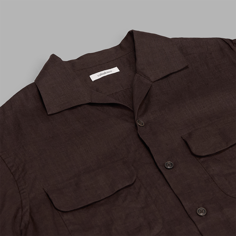 calmlence / Classic Open Collar SS Shirt (D.Brown)