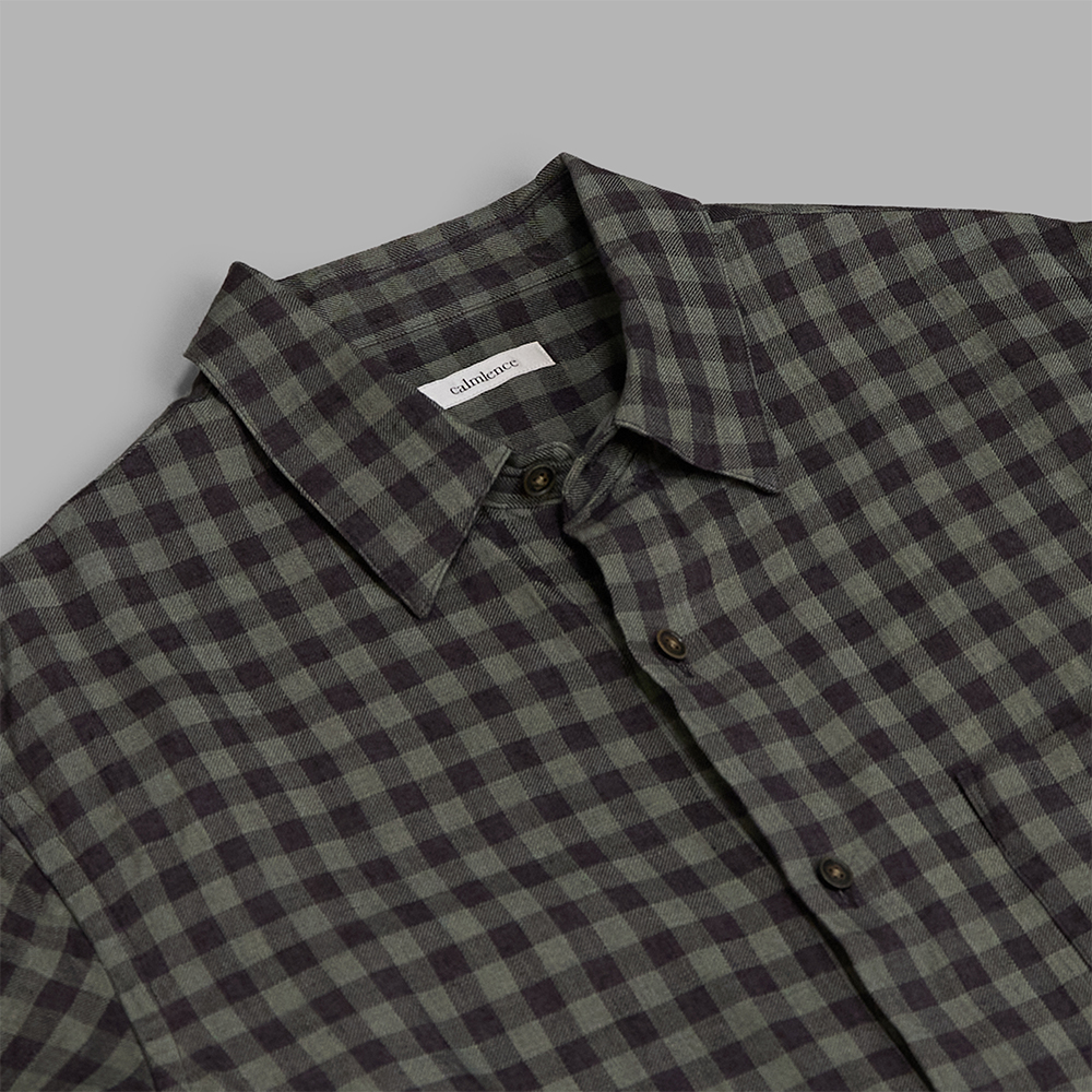 calmlence / Regular Collar SS Shirt (Gray/Brown)
