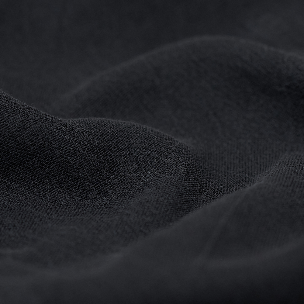 薄手で乾いた質感のシルク・コットンの生地を使用しています。洗いで膨らみのあるラフな動きと、フェード感のある風合いに仕上げています。